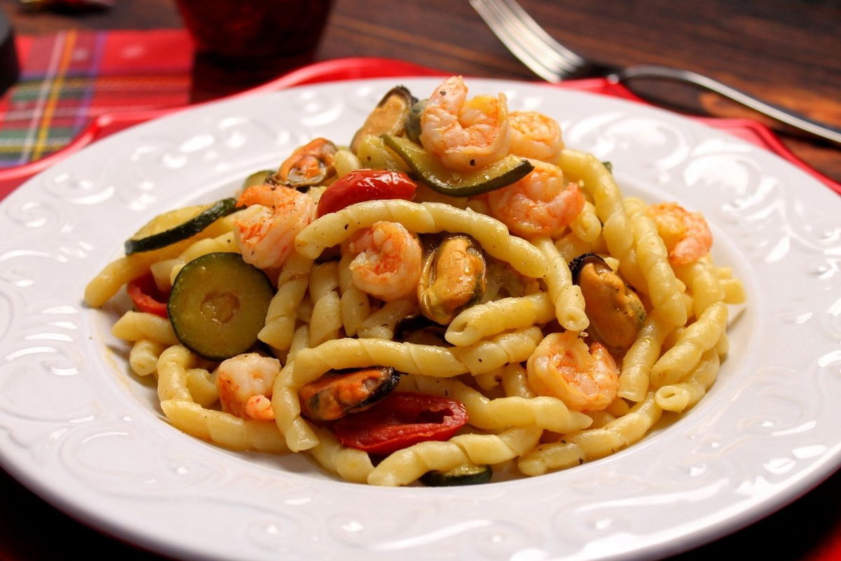 Le busiate con zucchine, mazzancolle e cozze sono un primo piatto facile da realizzare e gustoso, perfetto da accompagnare con un calice di vino bianco.