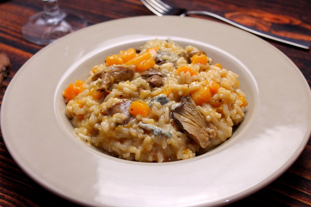 Risotto con zucca, funghi misti secchi e gorgonzola